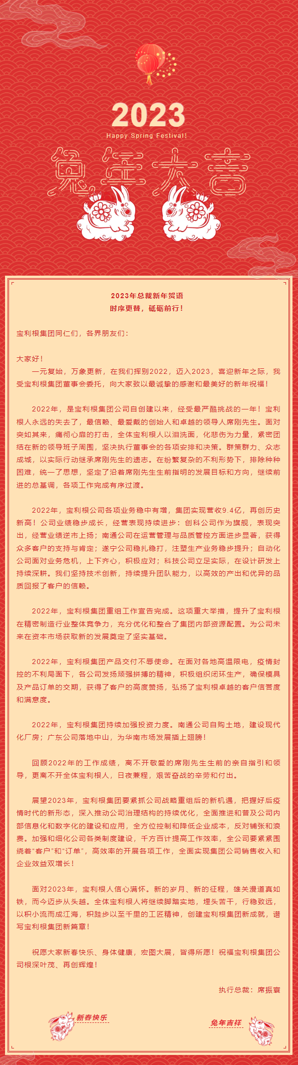 2023年总裁新年贺语 时序更替,砥砺前行!